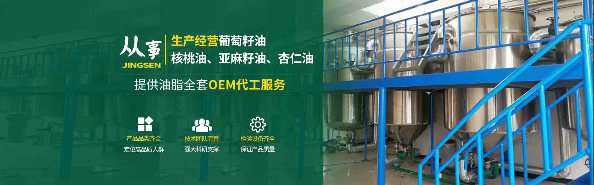 生產經營葡萄籽油、核桃油、山茶油、亞麻籽油、紫蘇籽油、杏仁油、小麥胚芽油、南瓜籽油、火麻籽油、橄欖油等食用油及核桃粉、杏仁粉等植物蛋白粉。